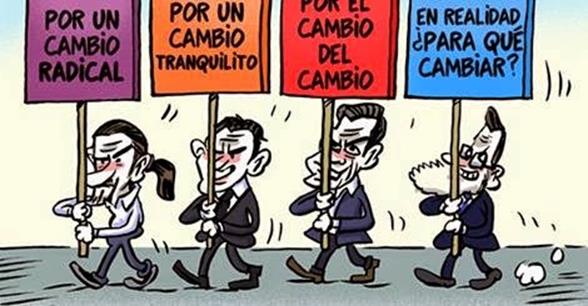 La manzana violeta (Podemos) ha resultado un fascinante experimento de cómo fabricar un líder a través de la televisión. Se presentaron como antisistemas, nacidos de la indignación ciudadana de los 15-Mataos y tal. Los problemas, como siempre, han venido tras una mirada más detenida: ¿cómo? ¿Que a Pablemos le financian dos dictaduras (Venezuela e Irán)? Y a partir de ahí, a Strelnikov Monedero, el mismo que dijo a Lagarde «¡Muérete tú!», el mismo que se arrimó a Carmen Lomana (probablemente ahora que vuelve a ser sólo un profesor universitario ya no estén juntos) le empezaron a aparecer problemas y le acabaron mostrando la puerta de salida. Ahora están intentando que las bases traguen, vía pactos con el PSOE, con la socialdemocracia que infecta el sistema. Vamos: que sean radicales pero poquito (o sólo de cara a la galería), no sea que el capital se asuste y se produzca la espantá de 1982, nada más llegar Felipe al poder.