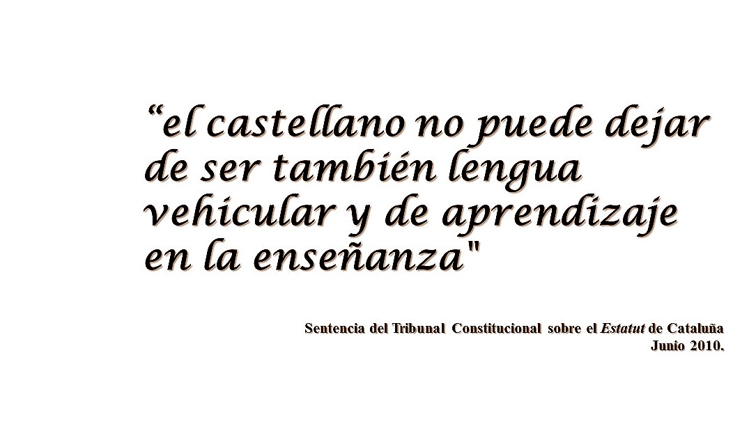 Es absurdo que siendo la lengua co-oficial y la vehicular de todo el Estado debamos exigir que nuestros hijos cursen el porcentaje mínimo de clases de español que deberían tener. Es impensable para quienes nos hemos criado con esa lengua como materna que debamos recordar que existen unas leyes, y más, un dictamen del Tribunal Constitucional que nos ampara (leer página 475).