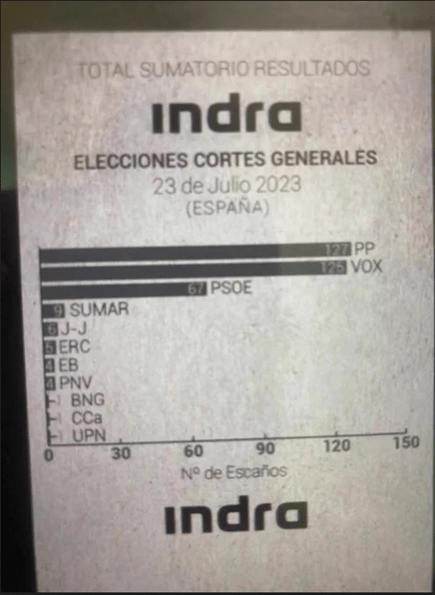 Si esto fuera la verdad, cosa que por otra parte me parecería de perlas dado el hartazgo que hay de las leyes de la izquierda, los «argumentarios» de la izquierda y los trolos de izquierda en redes sociales, se afianzaría aún más la tesis del pucherazo. Un Gobierno PP-VOX constituido así tendría un contrapeso en su actuación. Pero parece que a nadie le importa que el destino de España se halle en manos de un irresponsable al que no le importa pactar con los enemigos (interiores y exteriores) de la nación y partirla a cachos,