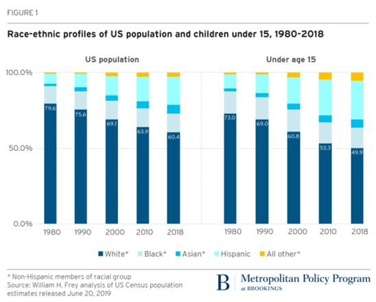 Pero esta disminución en la juventud blanca refleja menores tasas de natalidad blanca. Pero lo más importante a largo plazo, refleja un envejecimiento de la población blanca es que menos mujeres se han reproducido en sus años fértiles.
